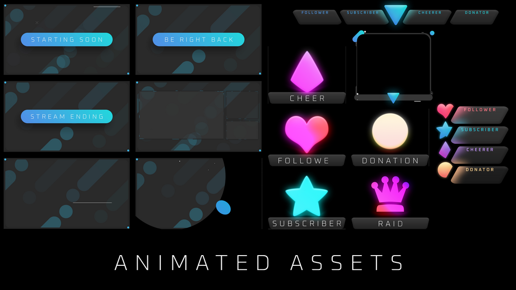 A Complete animated Twitch graphics package with 47+ files