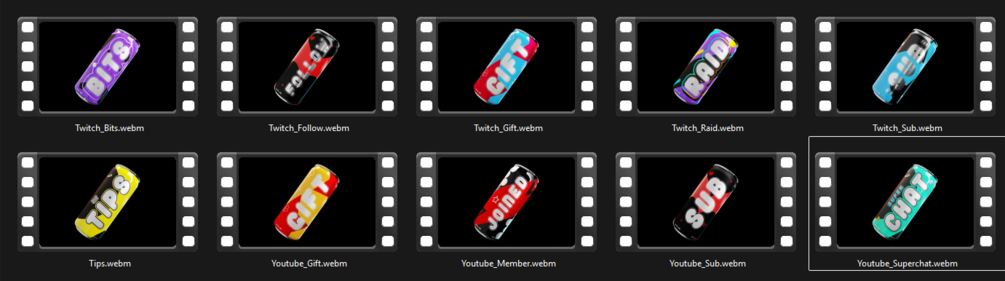 This is a pack of WEBM VIDEOS, created to be used as alerts in Streamelements or Streamlabs!